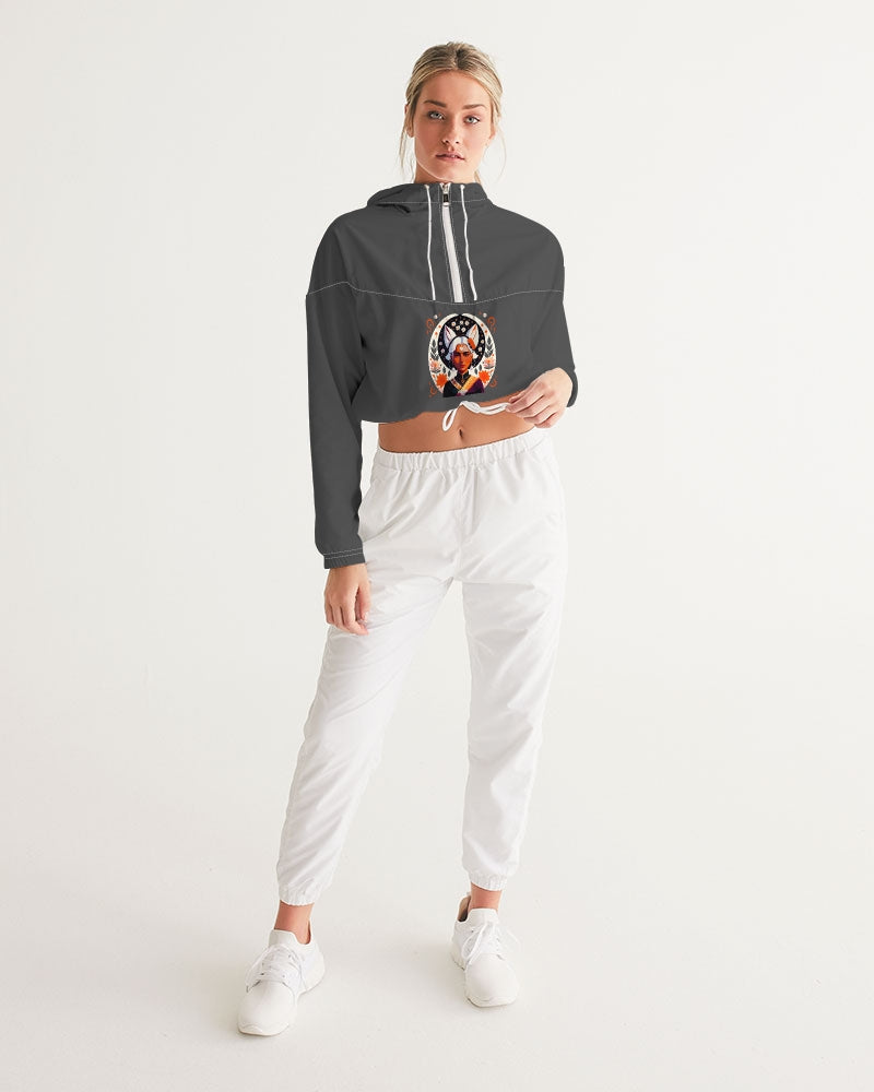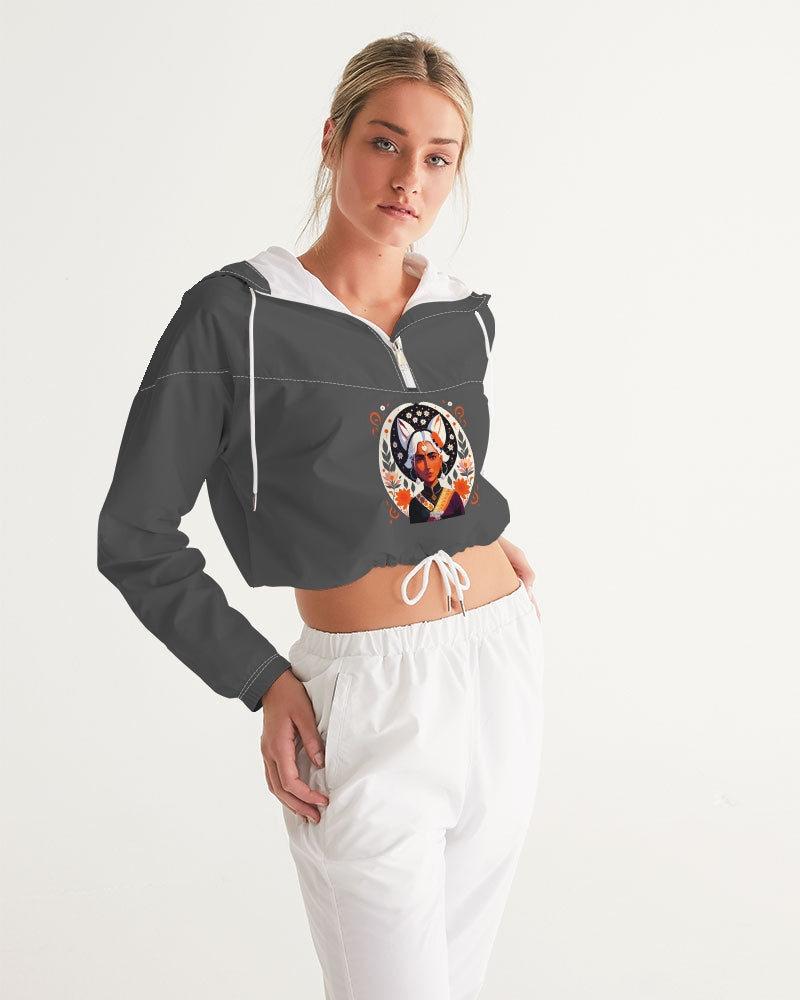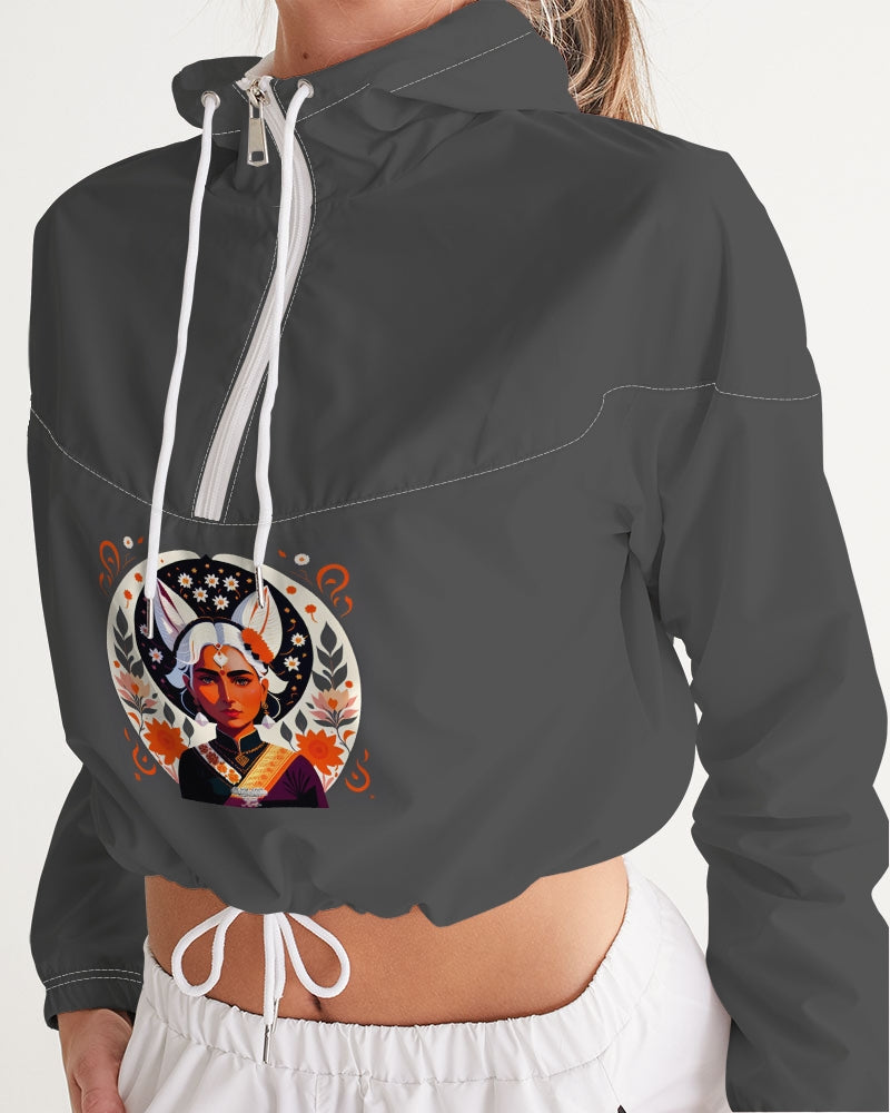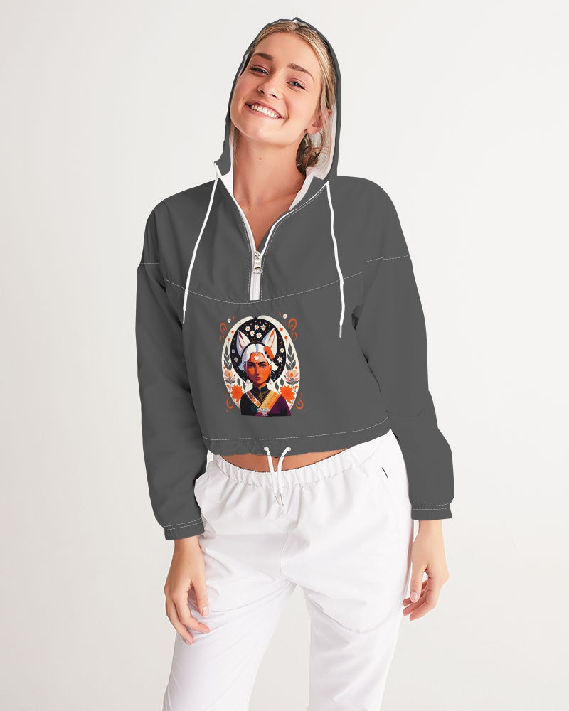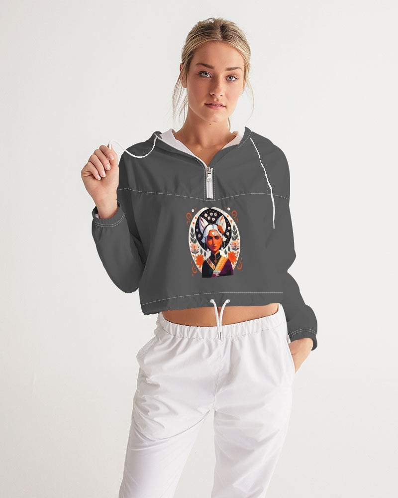 About The ArtIndian Silver fox Promoting Indian women who see themselves as silver foxes Product DetailsMade of lightweight, water-resistant fabric, our Women's Cropped Windbreaker has flexible styling options. Look cute while you're on the go or rock a stylish look while on a run.