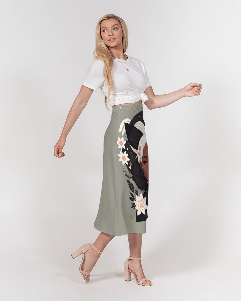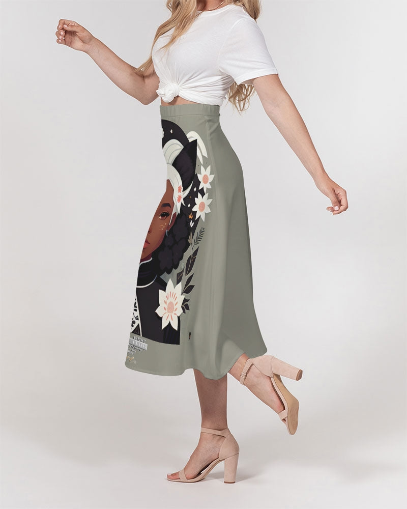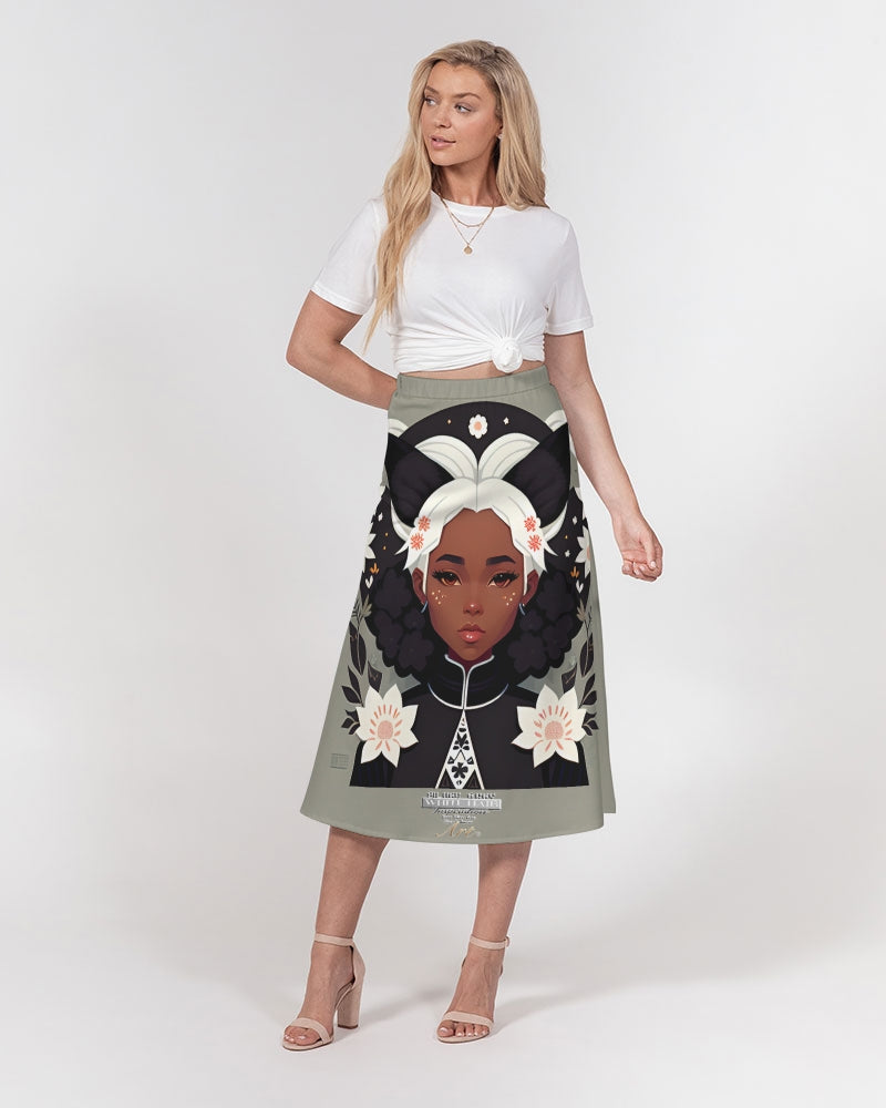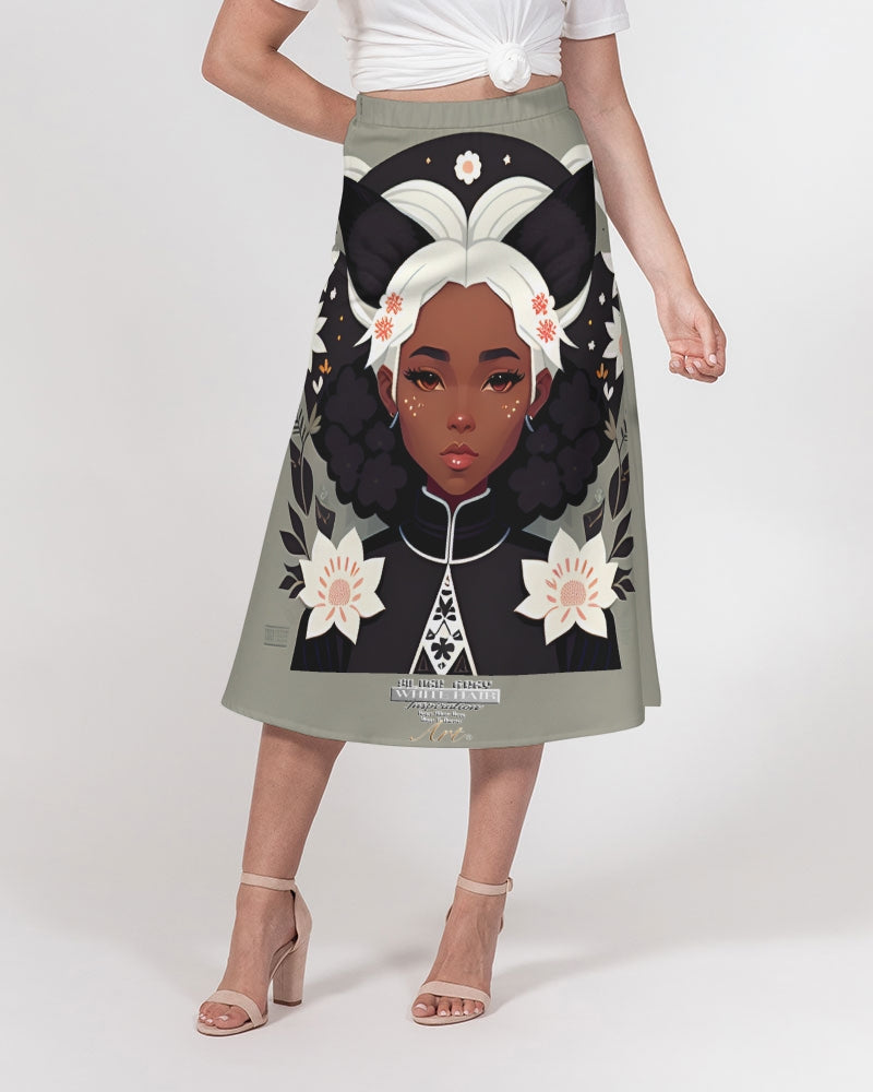 Nubian girl silver fox Women's A-Line Midi Skirt