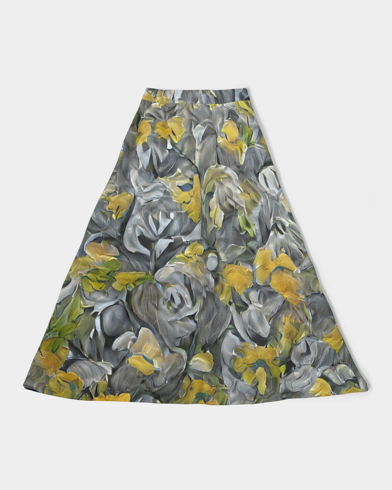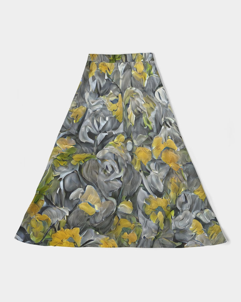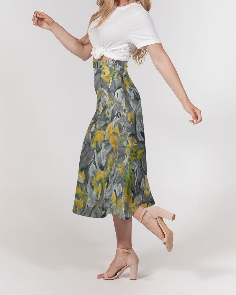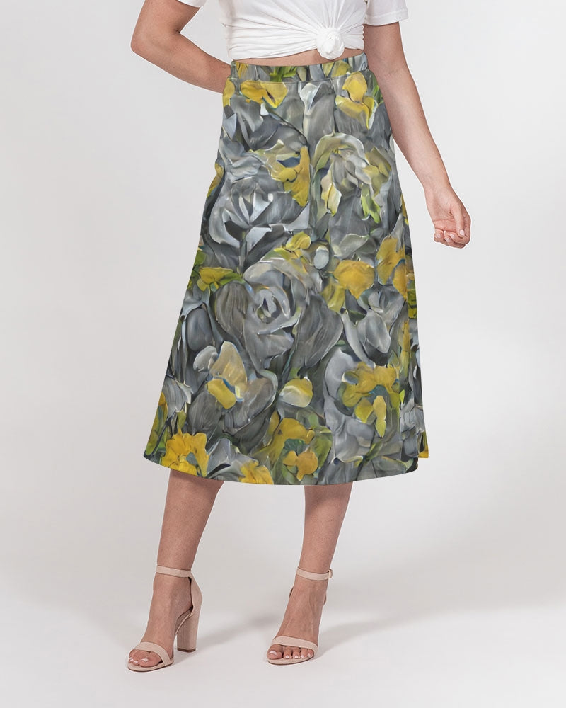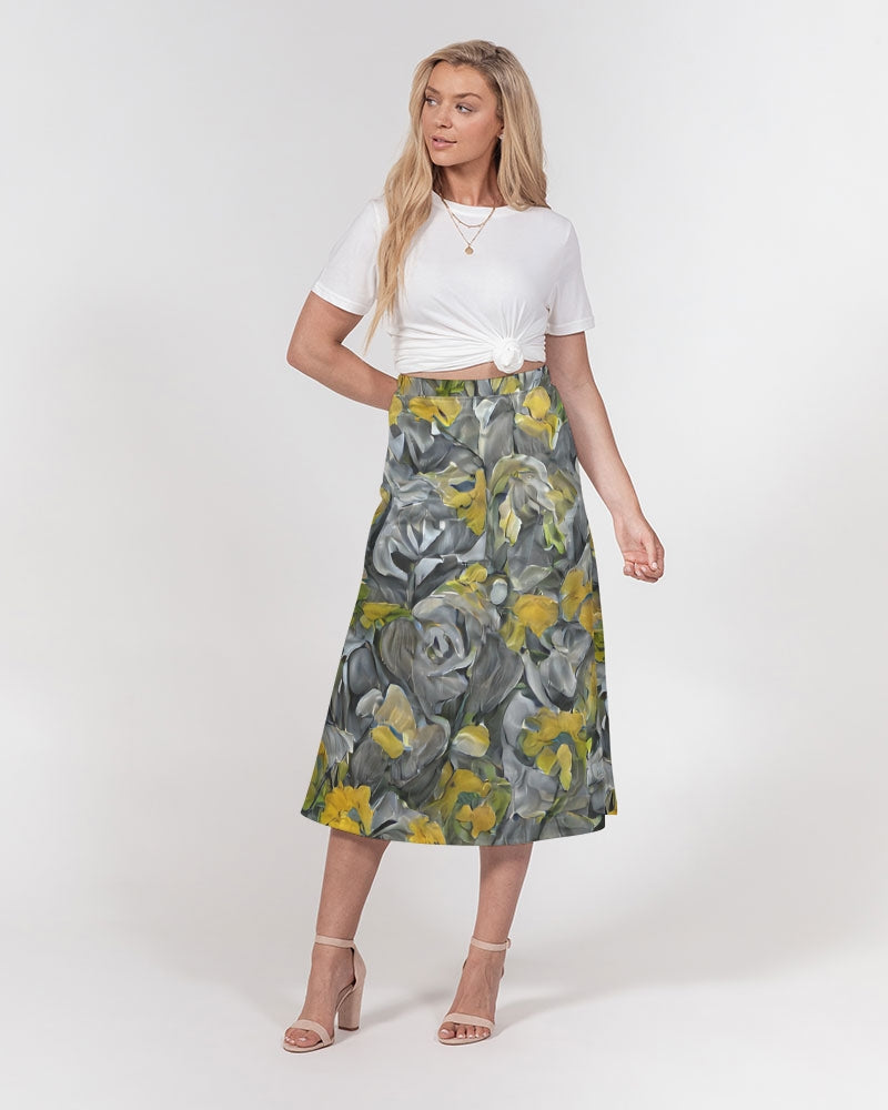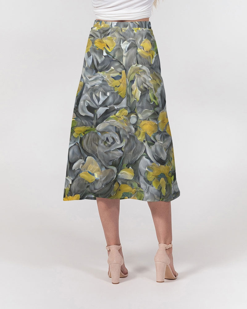 Orange and yellow and grey abstract design of Roses Women's A-Line Midi Skirt