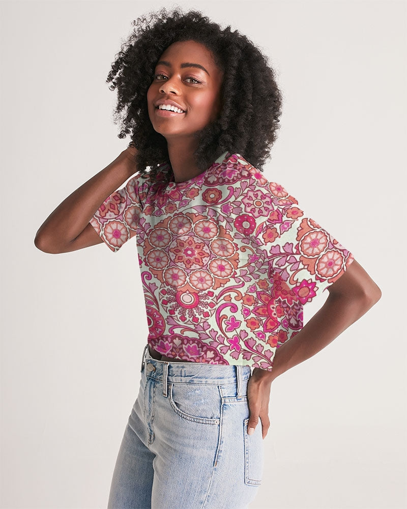 Pink Royal Abstract flower Women's All-Over Print Lounge Cropped Tee