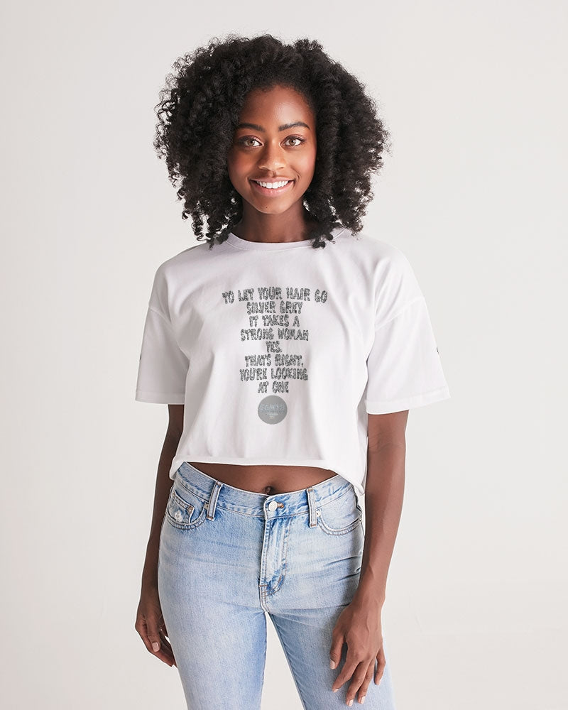 About The ArtStrong women you're Looking at one. It really does take a strong woman to allow her hair to go silver Grey, this quote that everyone can read as a reminder. Product DetailsMade of premium french terry, our Women's Lounge Cropped Tee is a step above the ordinary with its high quality fabric. Featuring dropped shoulders and an oversized fit, it's perfect for lounge or a relaxed look to wear on repeat.