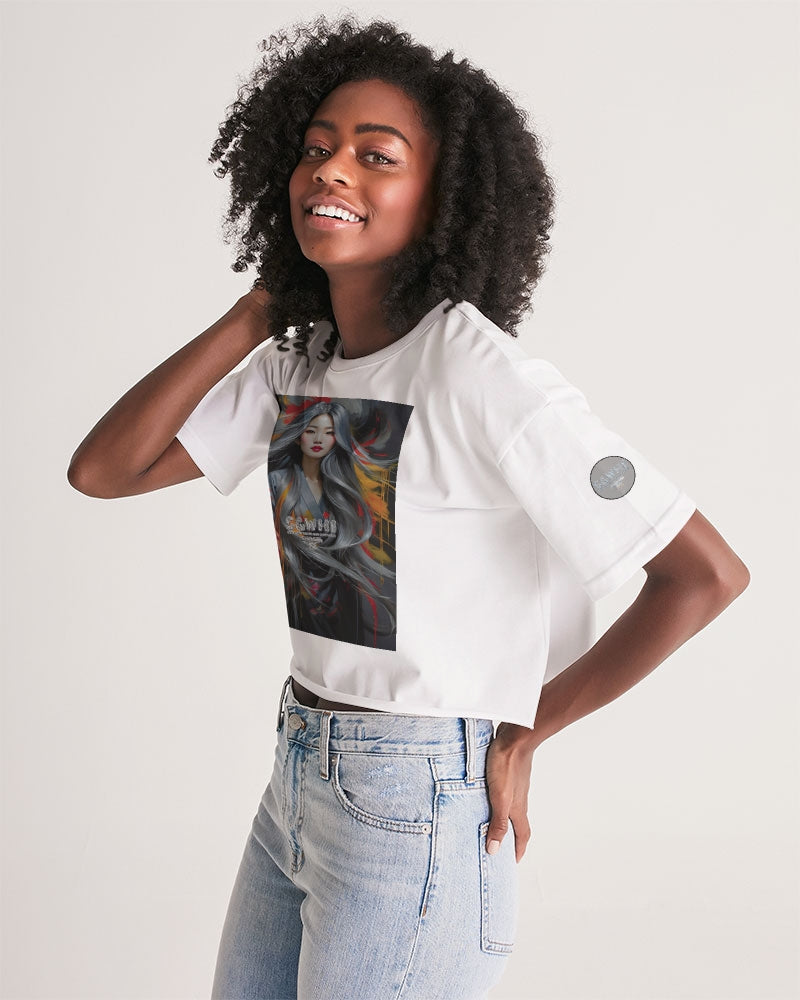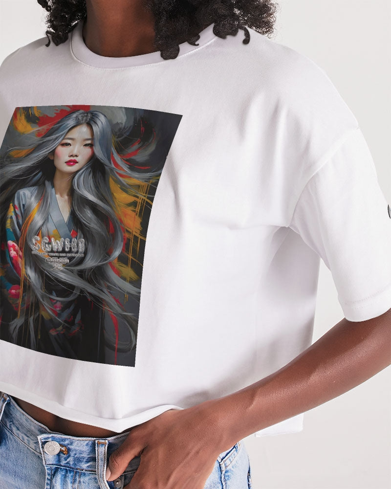 About The ArtThis is part three of a three part collection This is part three of a three part collection promoting Asian women who have amazing silver grey white Hair.The portrait and pattern design has been inspired and influence by our amazing Asian style and culture. Product DetailsMade of premium french terry, our Women's Lounge Cropped Tee is a step above the ordinary with its high quality fabric. Featuring dropped shoulders and an oversized fit, it's perfect for lounge or a relaxed look to wear on repeat.