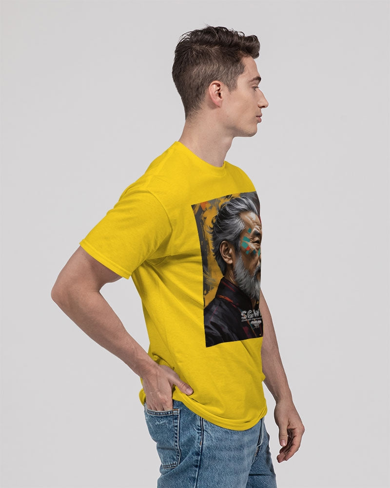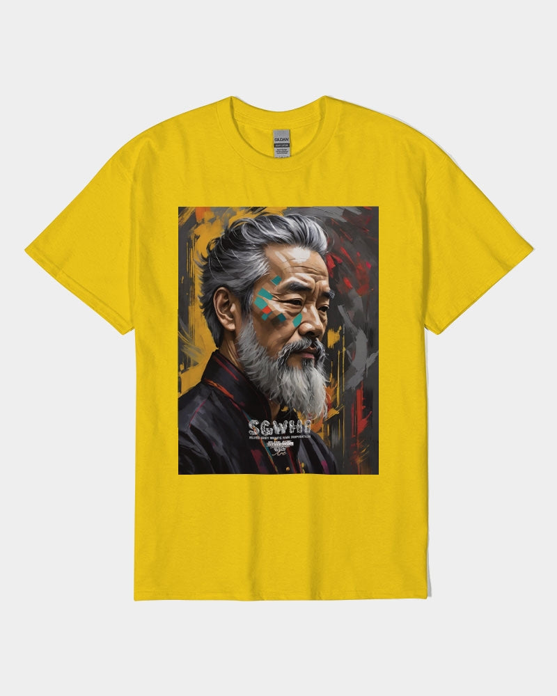 About The ArtAsian Knight This is number four of a four part knights collection promoting asian men with silver grey white hair and beards Product DetailsA modern take on a classic style tee, designed for all-day comfort. This wardrobe staple is made of heavy preshrunk cotton that will last, hold the shape and resist shrinking.