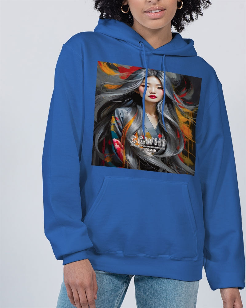 About The ArtThis is part three of a three part collection This is part three of a three part collection promoting Asian women who have amazing silver grey white Hair.The portrait and pattern design has been inspired and influence by our amazing Asian style and culture. Product DetailsThis Champion hoodie made of blended cotton with Double Dry® technology is bound to look stylish and keep you warm. Features front pouch pocket, double lined hood, and banded rib-knit hem and cuffs.