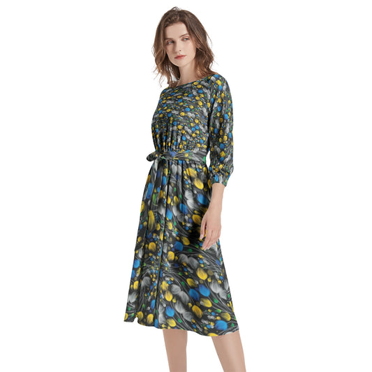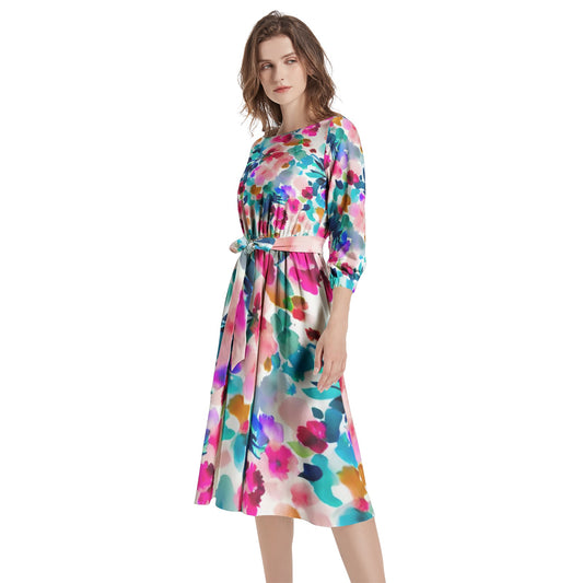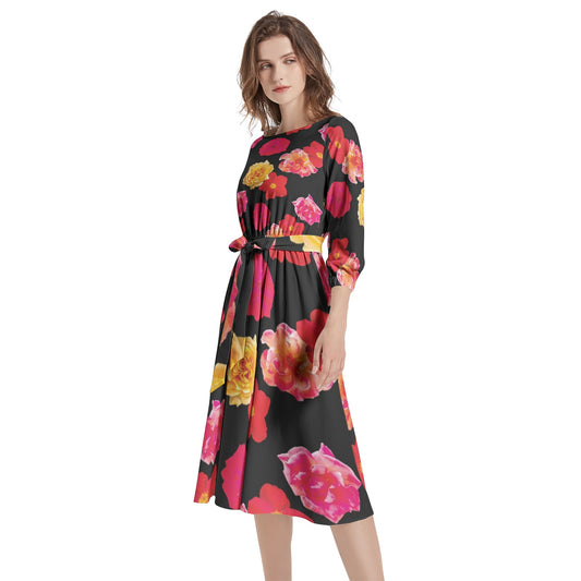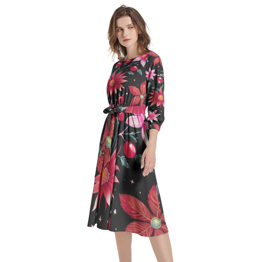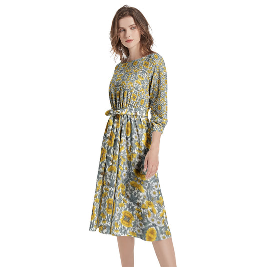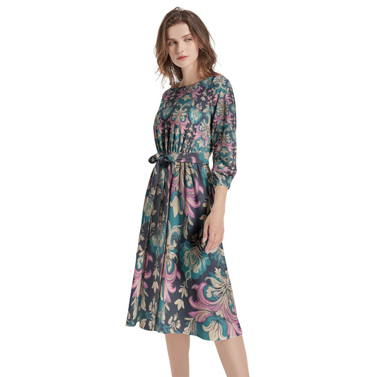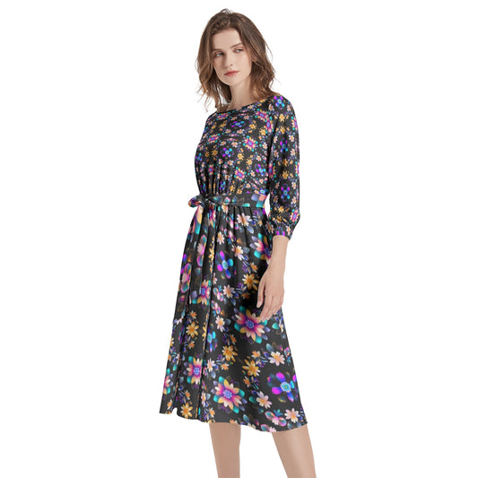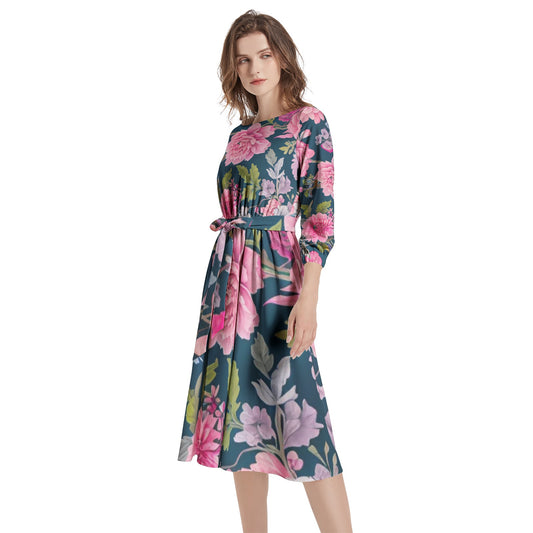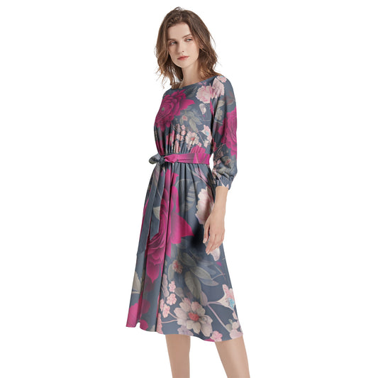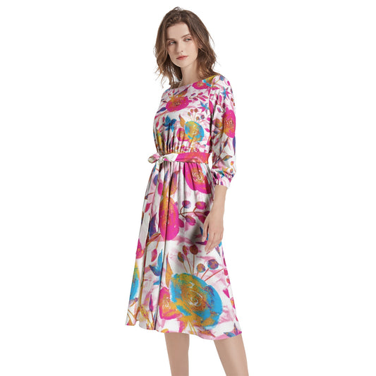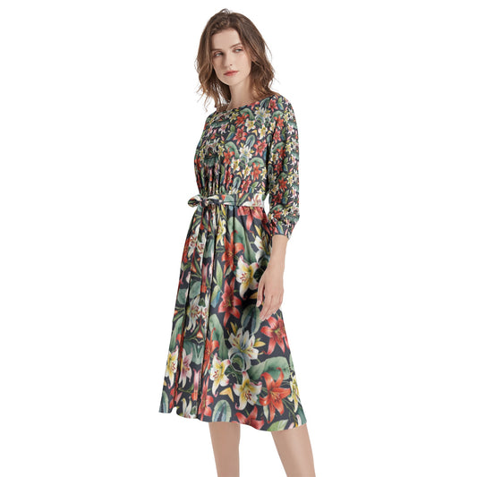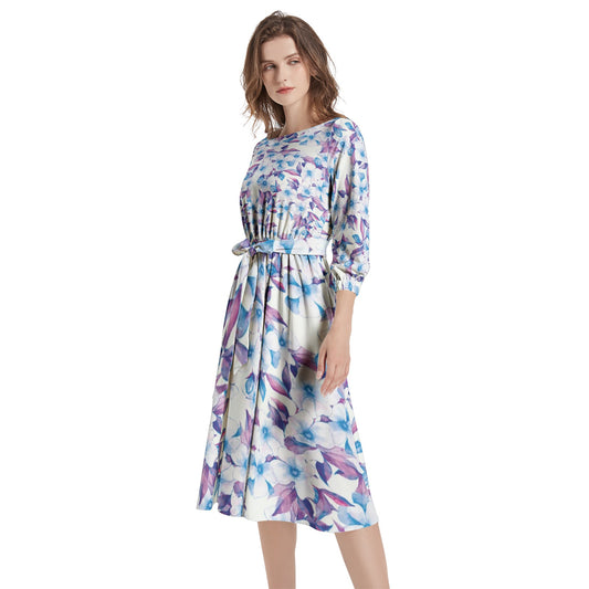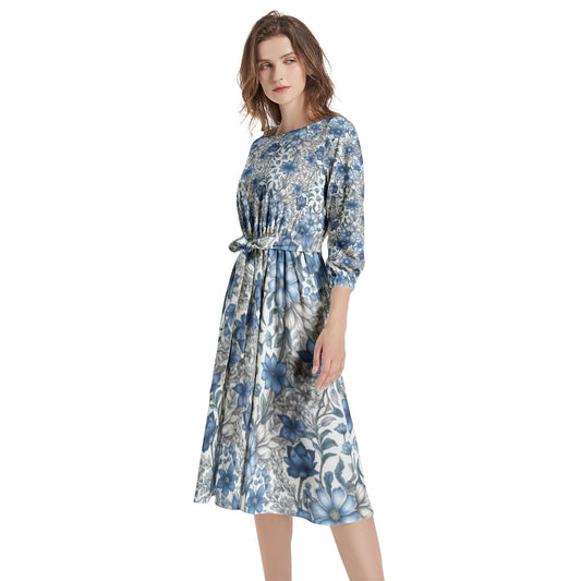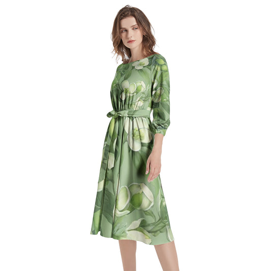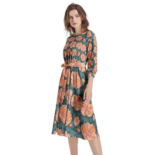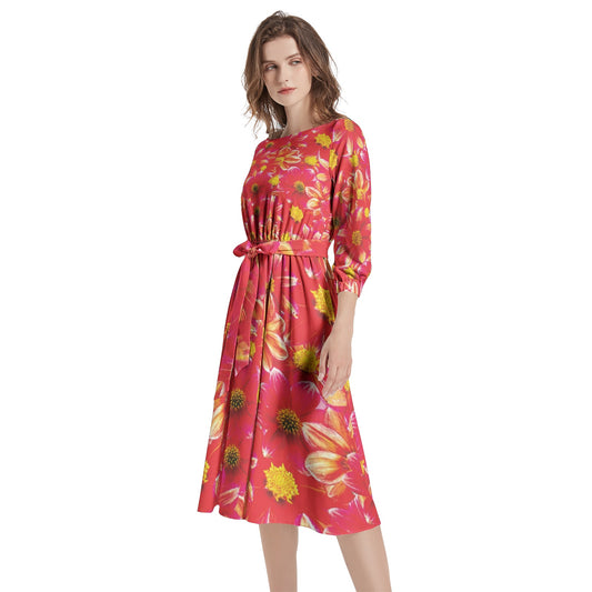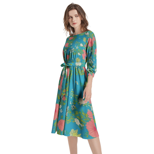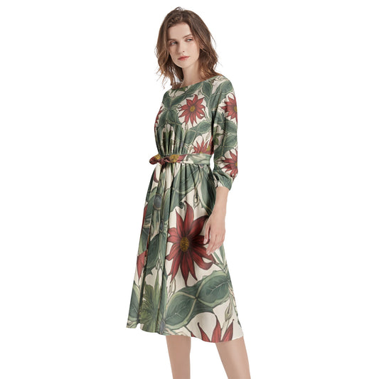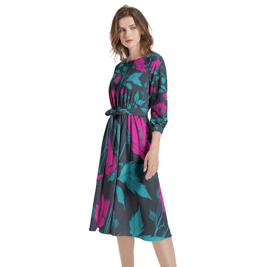 Boat Neck Belted Flared Dress