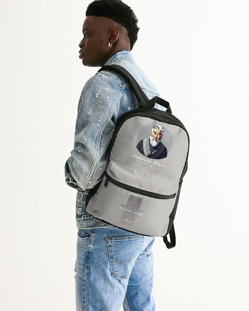 About The ArtAsian Silverfox Men Promoting men who have Silver grey hair see themselves as silver foxes Product DetailsShow off your custom designs on our Small Canvas Backpack. Along with two side pockets, and adjustable, padded shoulder straps, the main interior pocket fits up to 13" laptops with plenty of room for easy access to your essentials.