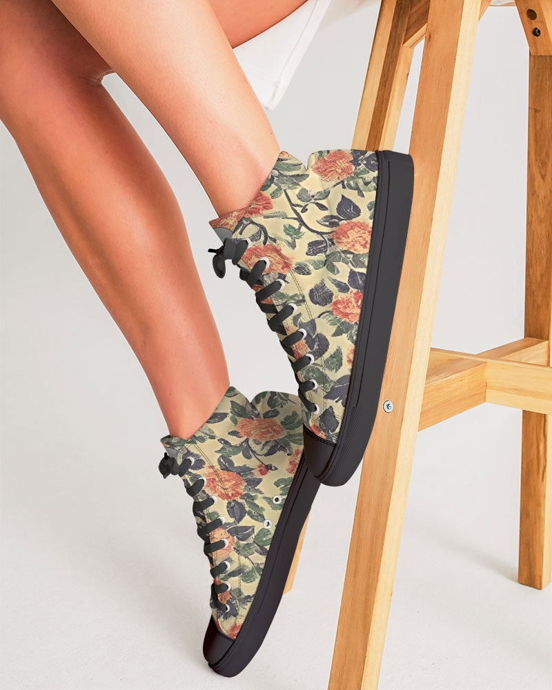 Orange Spring Blossom Women's Hightop Canvas Shoe - Black