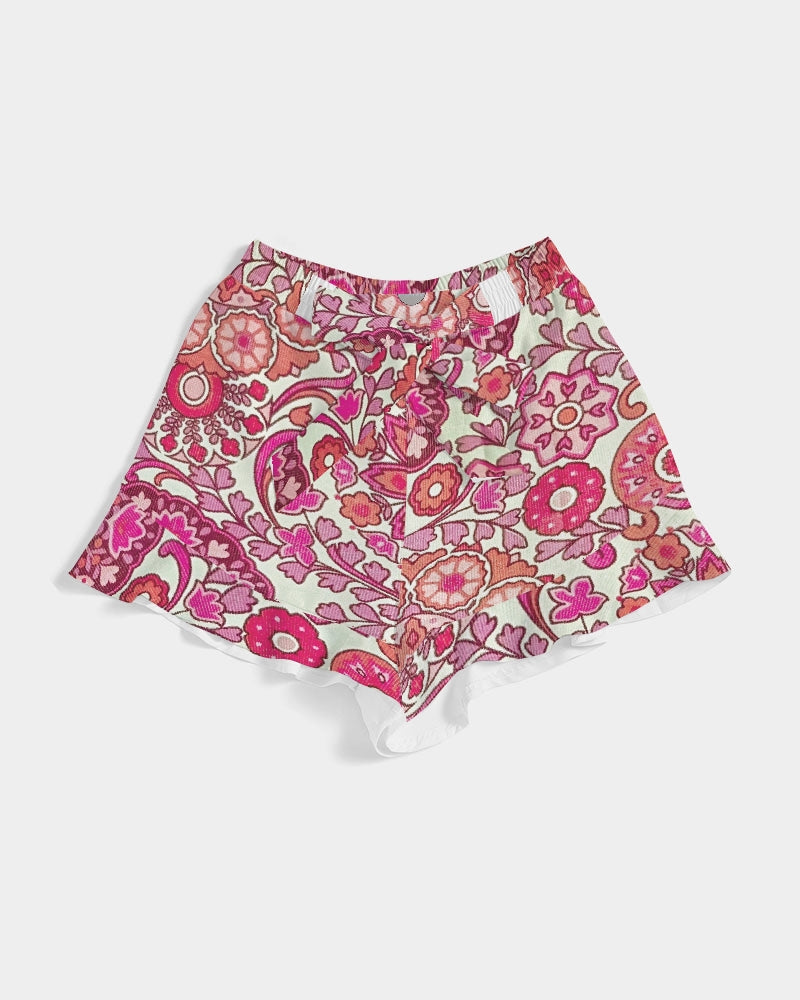 Pink Royal Abstract flower Women's All-Over Print Ruffle Shorts