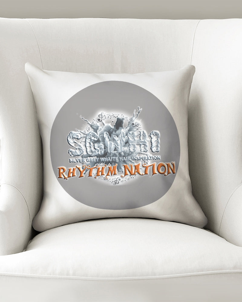 About The ArtSGWHI Rhythm Nation & Mark Boyce Logo collection of fashion merchandise promoting the brand music that is inspired by amazing women with silver grey white hair. And also just ordinary men and women who are going through the everyday mental physical and emotional struggles.Together, we inspire one another together we are stronger . Product DetailsSpice up your home with this soft, smooth, custom designed Throw Pillow. You can add a touch of comfort to any living space. Pillow insert not included.