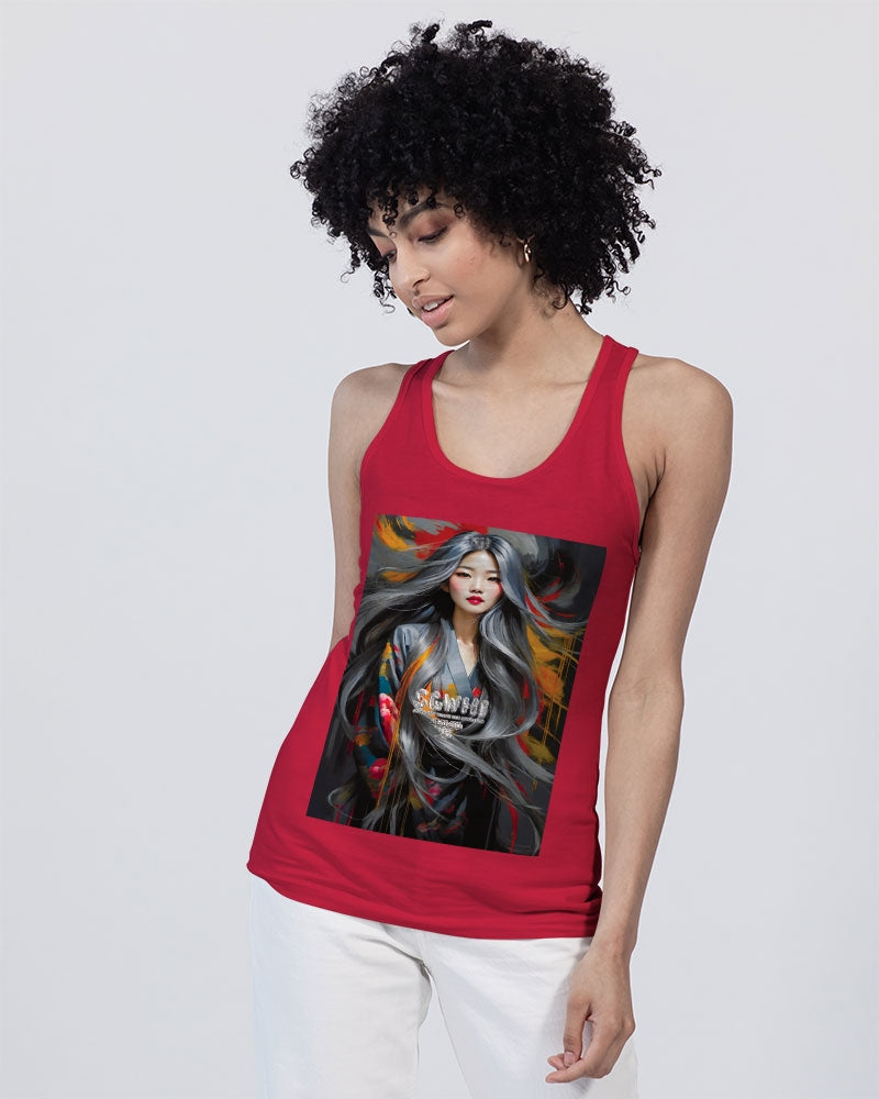 About The ArtThis is part three of a three part collection This is part three of a three part collection promoting Asian women who have amazing silver grey white Hair.The portrait and pattern design has been inspired and influence by our amazing Asian style and culture. Product DetailsThis classic, soft stretch jersey cotton unisex tank is perfect for women and men. It features a round neckline and relaxed fit. This style is available in a variety of solid colors. Bella + Canvas is known for their Retail Fit, which is more fitted than a standard t-shirt. They are designed to contour the body more closely with more form-fitting lines around the shoulders,arms, and torso.