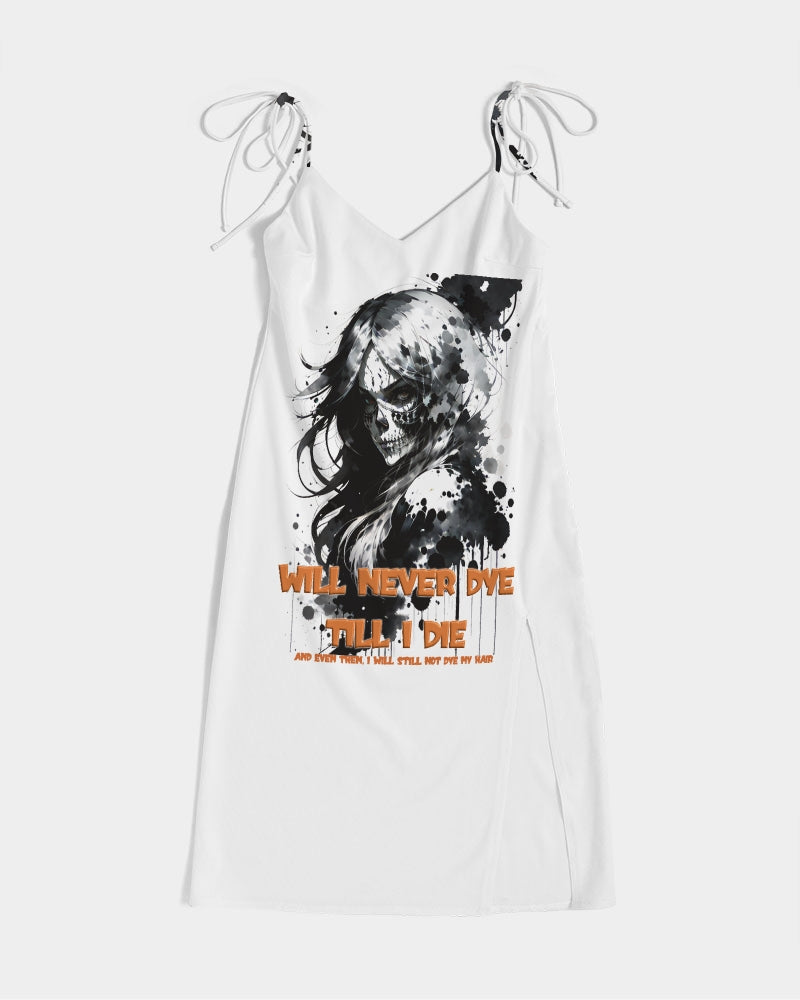 About The Artwill not dye till i die Promoting women that will never die their hair till they die. Product DetailsThis versatile and chic midi-length dress is the perfect piece for your day-to-night transitions. With tie close straps and front split, this dress will have all eyes on you.